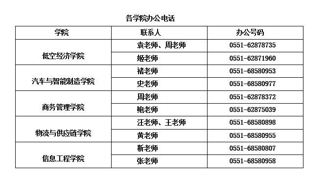 各学院办公电话